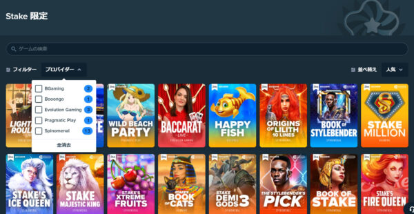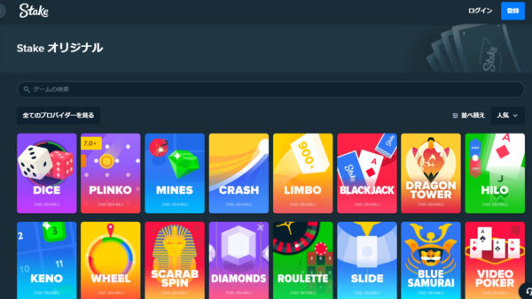 ステークカジノ(Stake)は、大手で人気の高いプロバイダとも多数提携していますが、オリジナルのゲームも取り扱っています。