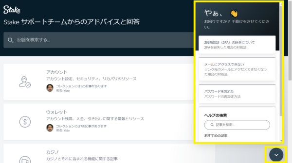 - メール(support@stake.com):24時間送信可能、返答は24時間以内