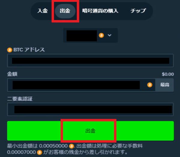 ステークカジノ(Stake)から出金する
