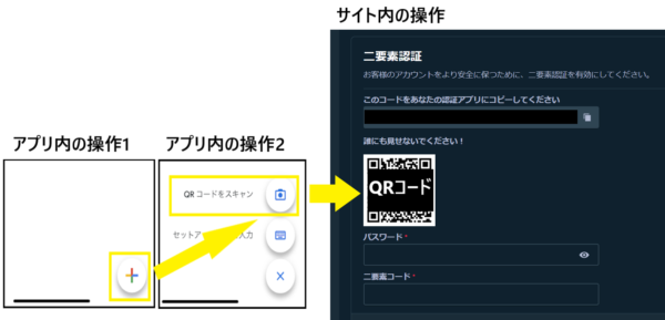 Google認証システムのアプリを開き、QRコードをスキャンする画面を開きましょう。
