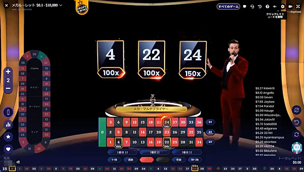 メガルーレットは、ヨーロピアンルーレットに最大配当500倍のマルチプライヤーを加えたギャンブル性の高いゲームです。