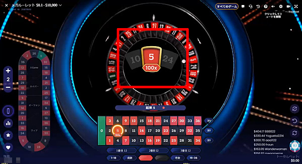 ルーレットで500倍は、夢がありますね!普段、ストレートアップに賭けることが多い人は、ぜひメガルーレットをお試しください。