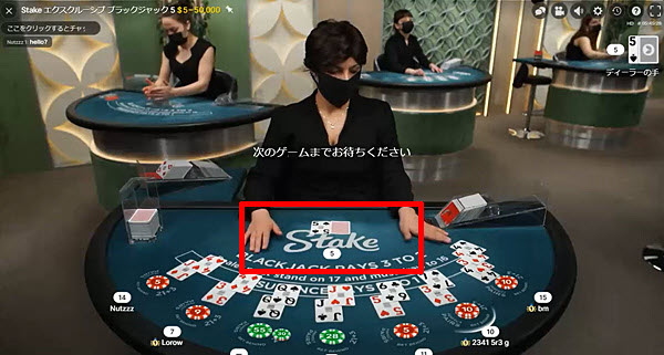 他サイトのライブブラックジャックでは、低額で遊べるテーブルが埋まっていることが多いのですが、ステークカジノなら空席が見つかる可能性が高いです。