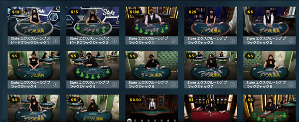 専用テーブルを用意しているオンラインカジノは他にもありますが、ステークカジノはテーブル数が圧倒的に多いです!
