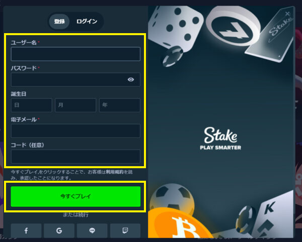 ステークカジノの登録方法