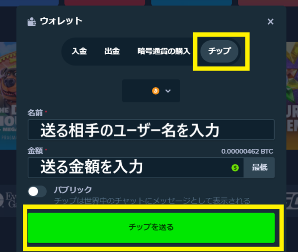 他のユーザーにチップを送金できる