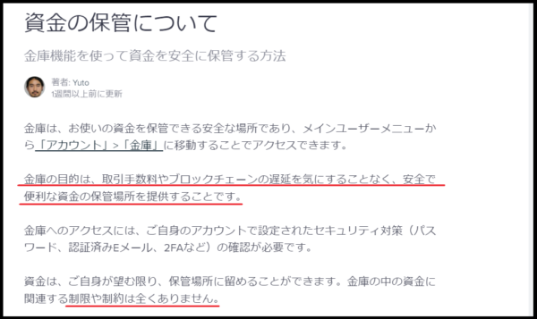 金庫は安全にアカウント内の資金を補完できる、貯金箱のようなものです。資金管理に役立ちます。