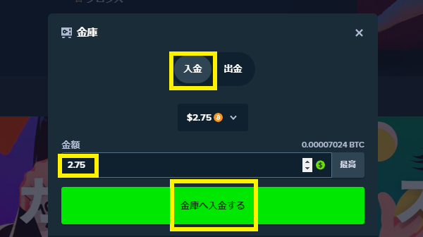 - 「入金」を選択する