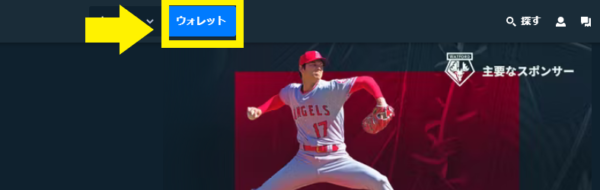 ステークカジノのサイトを開いてログインしたら、トップページ上部の「ウォレット」を押します。
