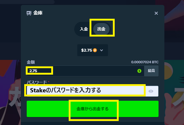 ステークカジノの出金について、基本情報から手順図解、金庫の活用方法まで解説しました。